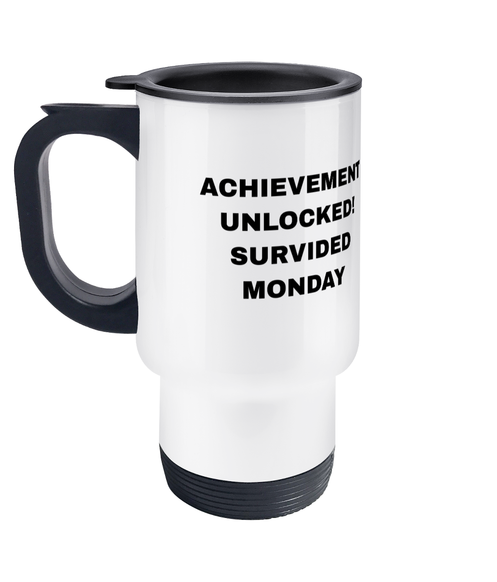 Gamers Travel Mug - Achievement Unlocked Survived Monday -